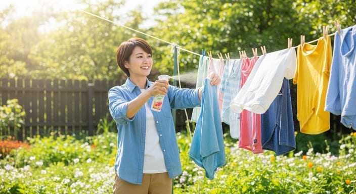 洗浄後は軽く絞って陰干しし、風通しのよい場所で自然乾燥させると、色あせを防ぎつつ臭い残りも抑えられます。特にお気に入りのプリントTシャツや柄ワンピースなどは、裏返して干すことで退色を防げるのでおすすめです。